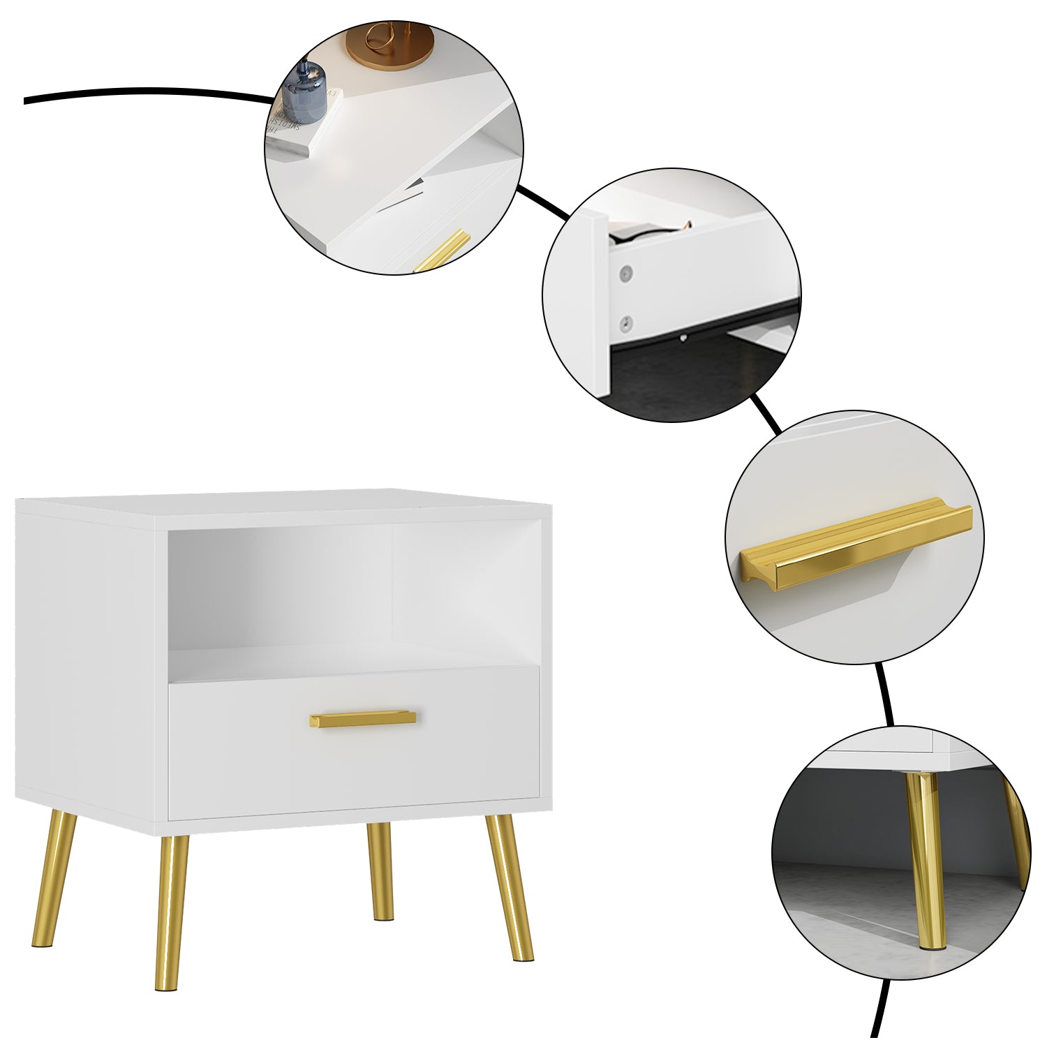 WIAWG Modern Nightstand for Bedroom Side Table with Drawer and Shelf White Set of 2