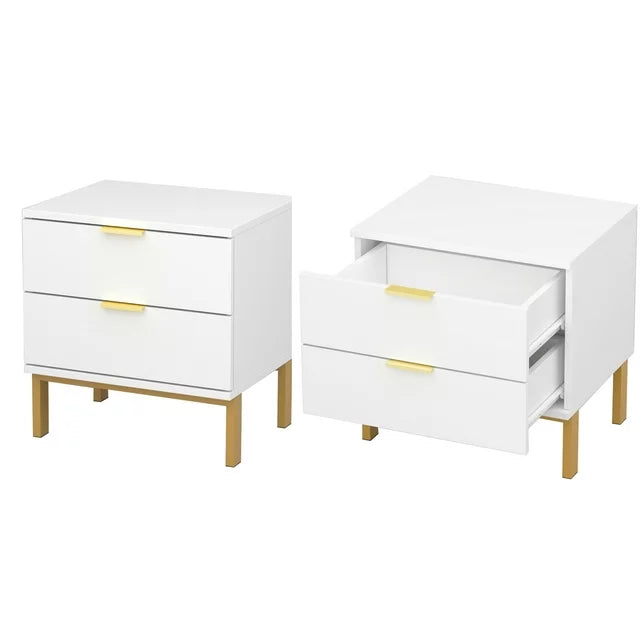 WIAWG Modern Nightstand Set of 2 for Bedroom/Living Room 2 Drawer End Table with Metal Handles White
