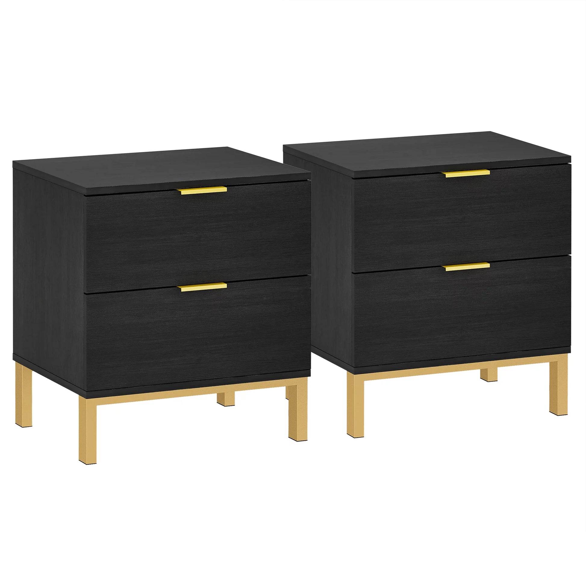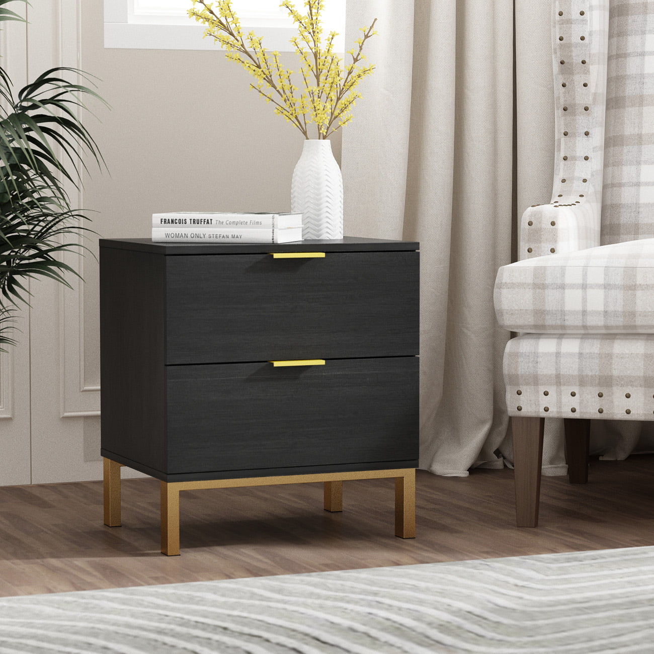 The DiDuGo nightstand is the perfect bedside table, with two drawers that are ideal for tucking away personal items, tablets, books, and beyond. Versatile in design with modern clean lines and gold metal legs, this piece blends well with any existing decor and can be used from space to space.
