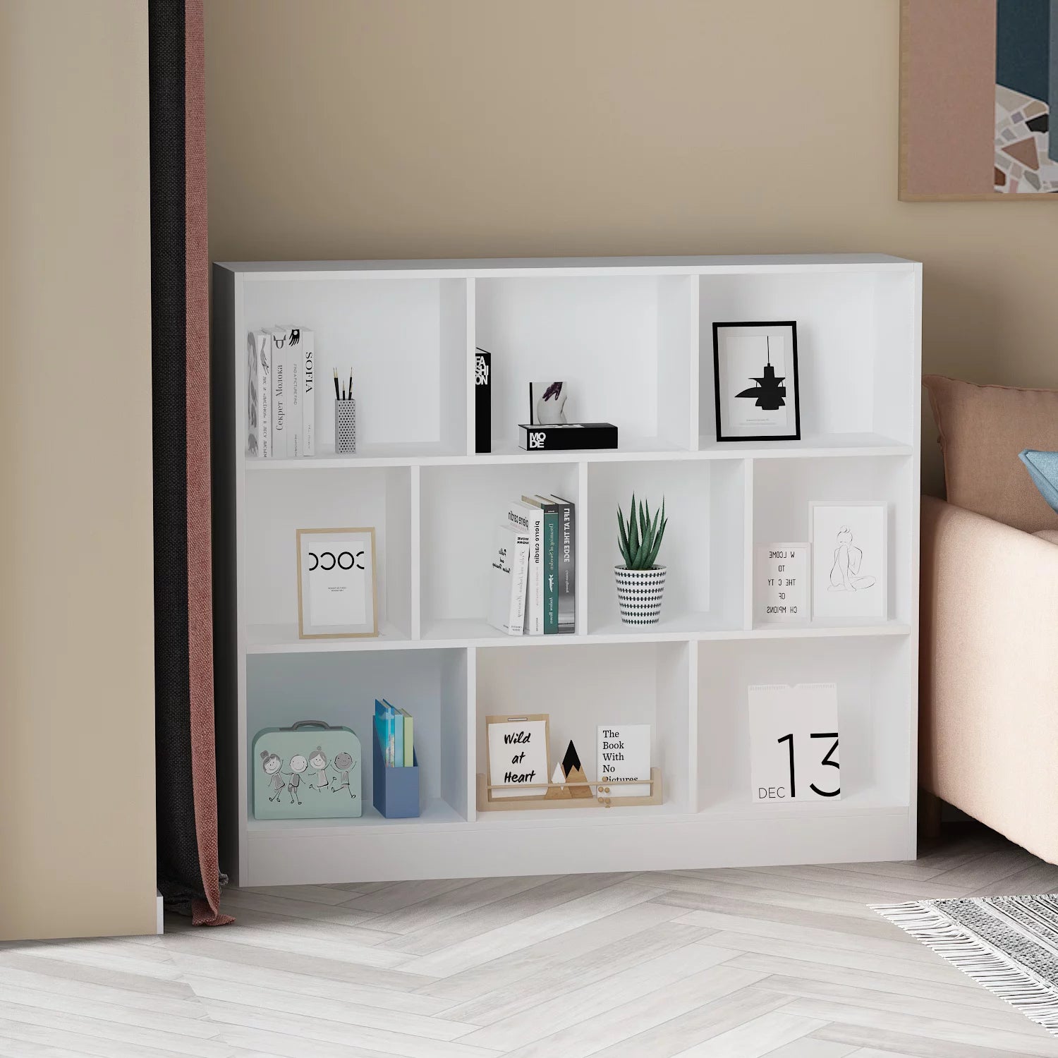 WIAWG Modern Open Shelf Bookcase Cube Storage Organizer for Home White 47.2"