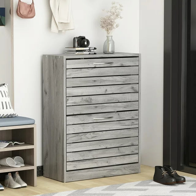 WIAWG Modern Shoe Storage Cabinet with 2 Compartments for Entryway Hallway Rustic Gray