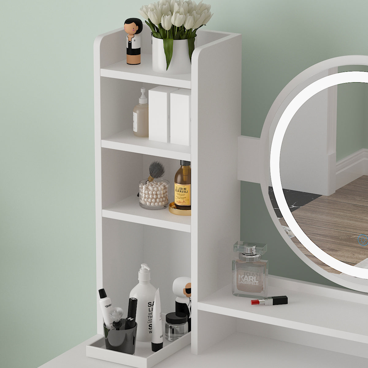 WIAWG Modern Vanity Set With Lighted Mirror Make up Table for Girls White