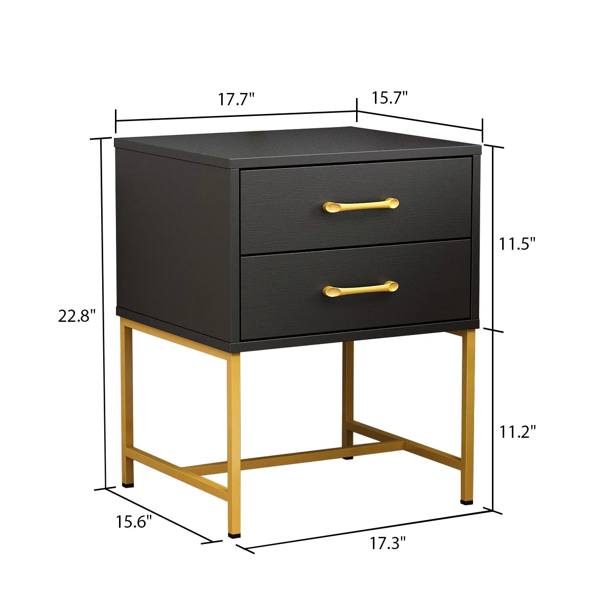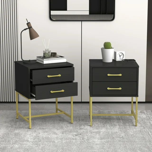 WIAWG Night Stand End Table Set of 2 with Metal Frame, Nightstand End Table, Side Table for Bedroom, Black