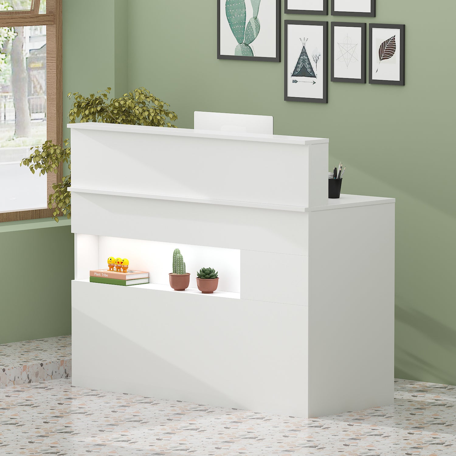 WIAWG Reception Desk Modern Front Desk Counter with Drawers and Lights White 47.2”