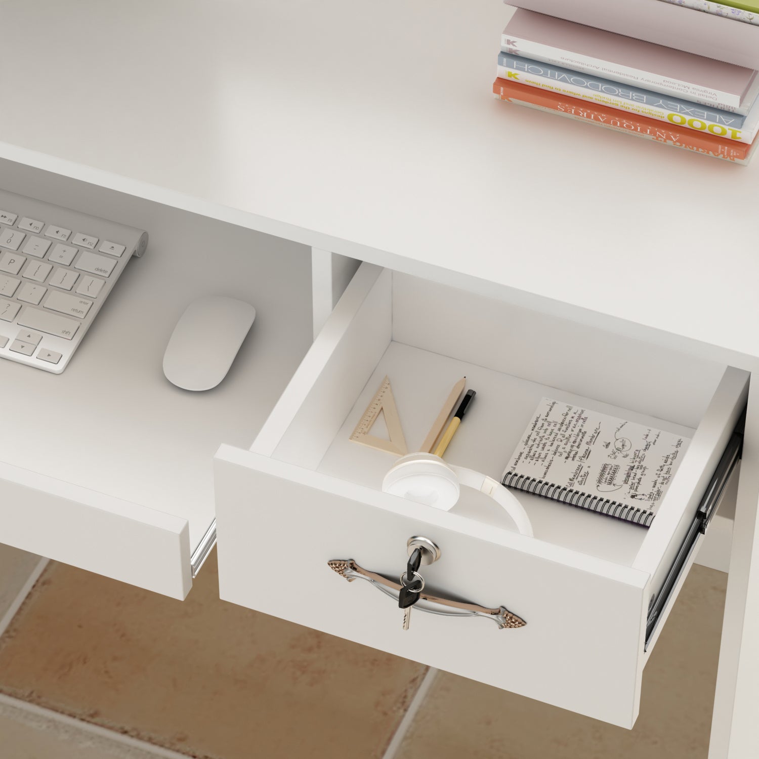 Our reception desk for a multi-functional reception desk. Commercial-grade laminate work surface and side panels are water-, scratch- and stain-resistant., and completely finished edges front, back, and bottom for high use office use. This fashionable reception center in clean contemporary design. Bow-shaped transaction counter and high-sided panels for privacy.This Reception desk comes with 2 drawers and a cabinet with door, providing ample storage space for all kinds of book magazines and office supplies, very practical and create the perfect work environment. The file drawer accepts both letter and legal filing, while a box drawer keeps supplies handy. The lock secures the drawer to protect your letter, legal and A4 files.This Reception desk can be used either as a free standing desk or as the main component or shell of a work station. All the pieces are super-simple to assemble with just basic tools.