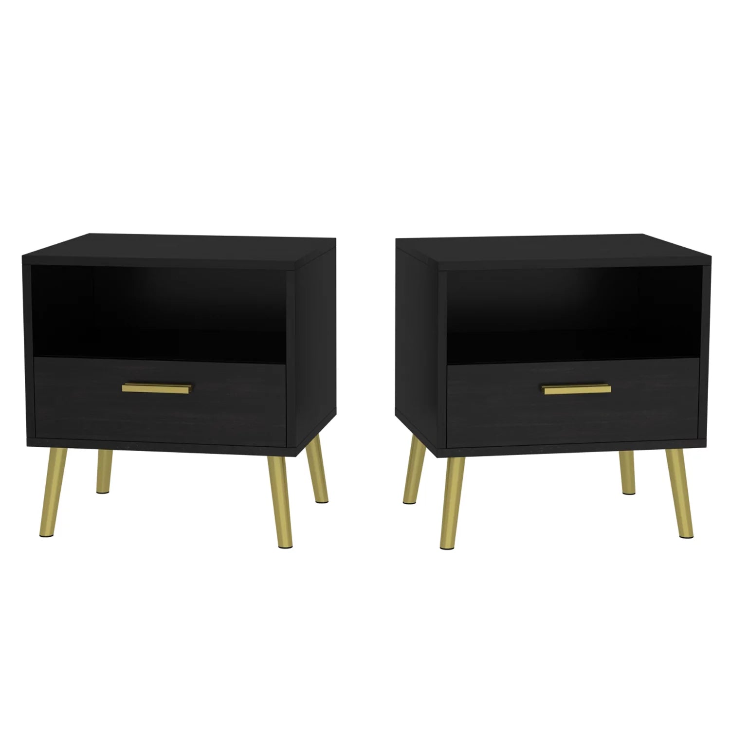 WIAWG Set of 2 Nightstand, End Table with Drawer and Open Shelf for Living Room Bedroom, Black