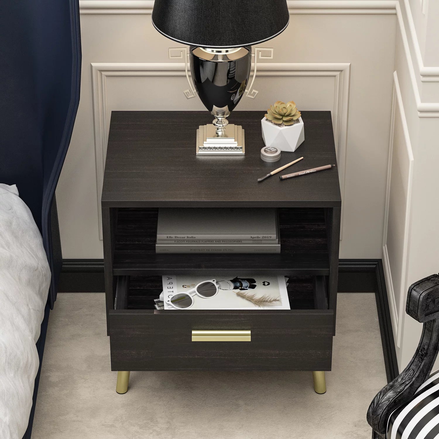 The night table can be placed in your living room, bedroom, and so on, perfect for daily use. The end table can add a touch of modern style to your living space, suit any existing furniture perfectly. The nightstand has stable wooden top, you can place magazines, table lamp or other accessories. The drawer and open shelf helps you keep your space neat and tidy. Every sofa’s side table, end tables display decor, hold TV remotes and beverages. The surface is large enough to accommodate a small lamp while leaving space for your nightly needs. This nightstand is designed for multi-purpose.