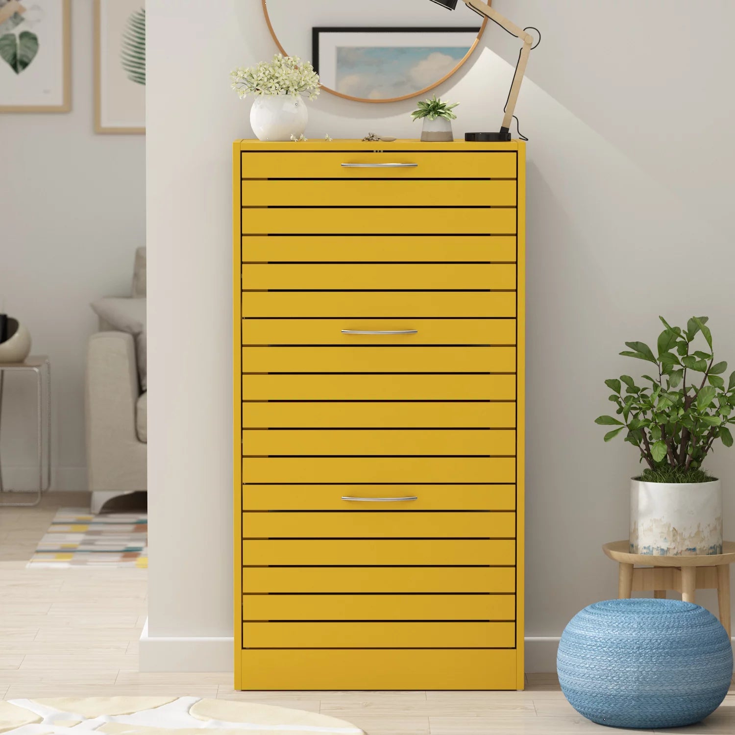 WIAWG Shoe Cabinet with 3 Tilt-Out Shutter Doors, Shoe Rcak Storage Cupboard for Enterway Hallway, Yellow