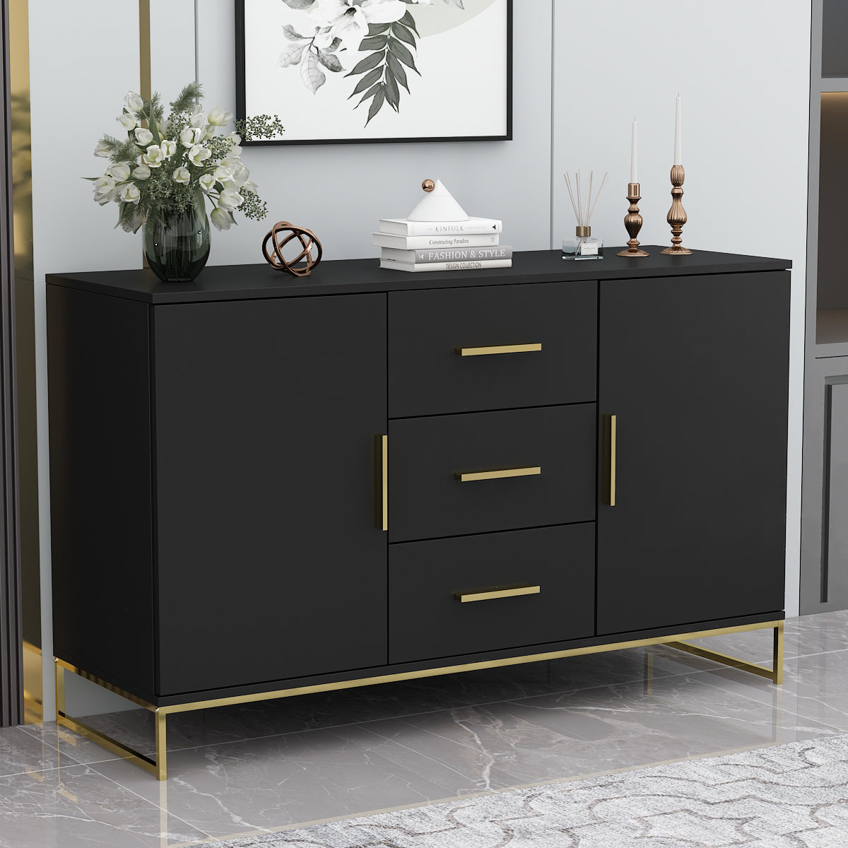 WIAWG Sideboard Buffet Cabinet with Drawers Storage Cabinets Black