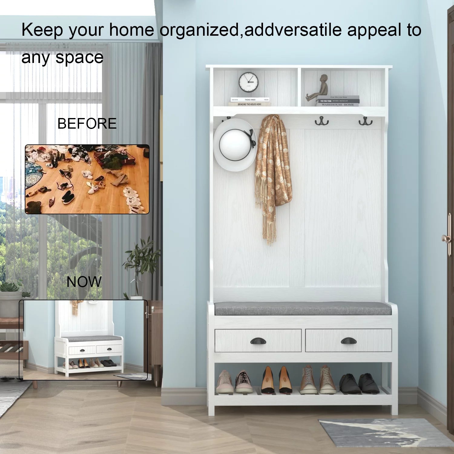 WIAWG Tall Hall Tree with Shoe Storage Bench for Entryway White