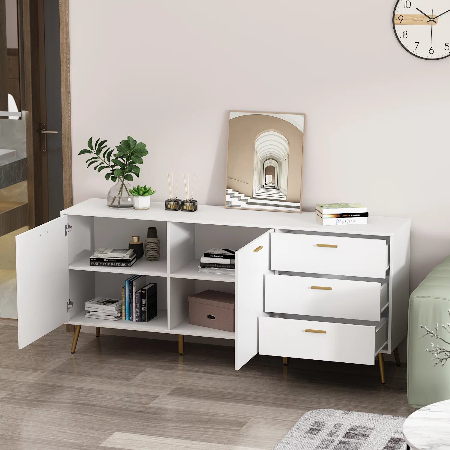 WIAWG TV Console Table with Cabinet Modern TV Stand with Drawers 66.9"