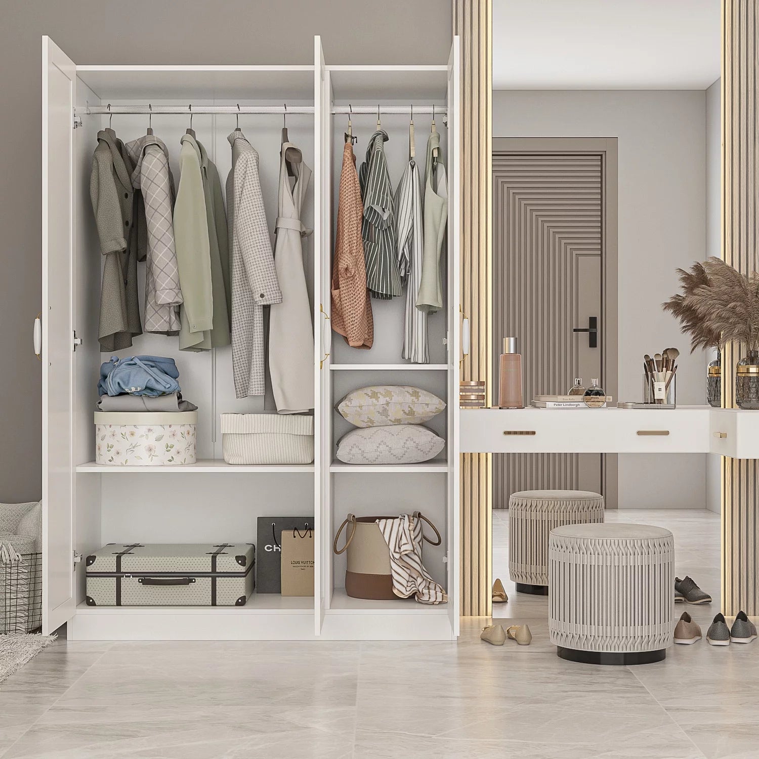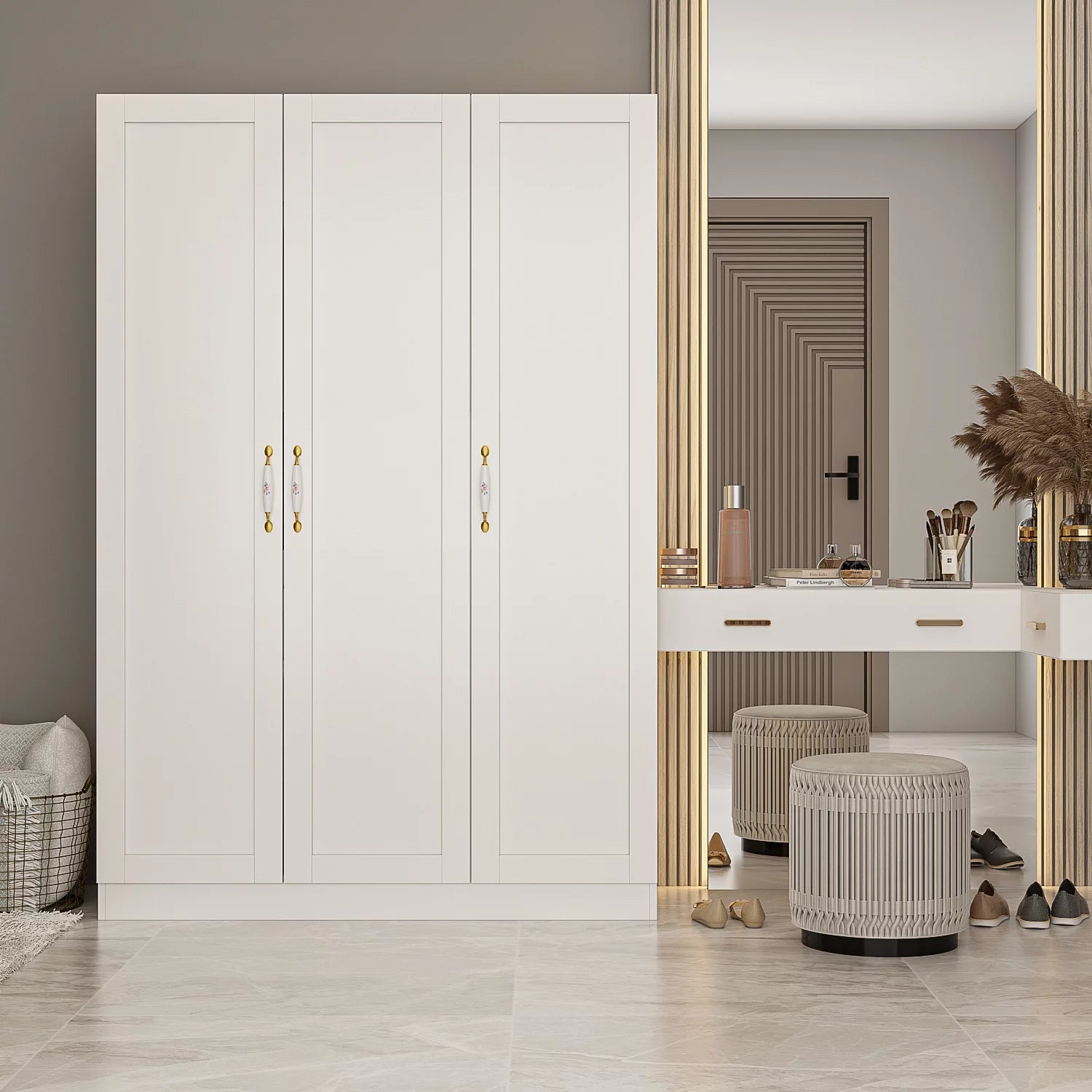 Fits with All Decors - This wood wardrobe closet is minimalist design, it combines white board with gold handle to create elegant charm. This wardrobe matches well with many different decors
