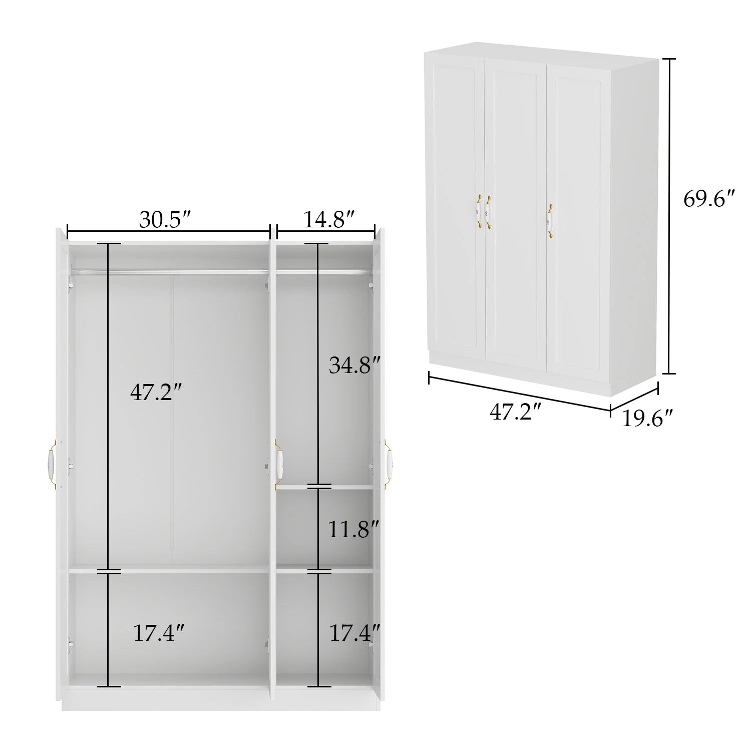 WIAWG Wardrobe Armoire with Hanging Rod 3 Door Armoire Wardrobe Closet White