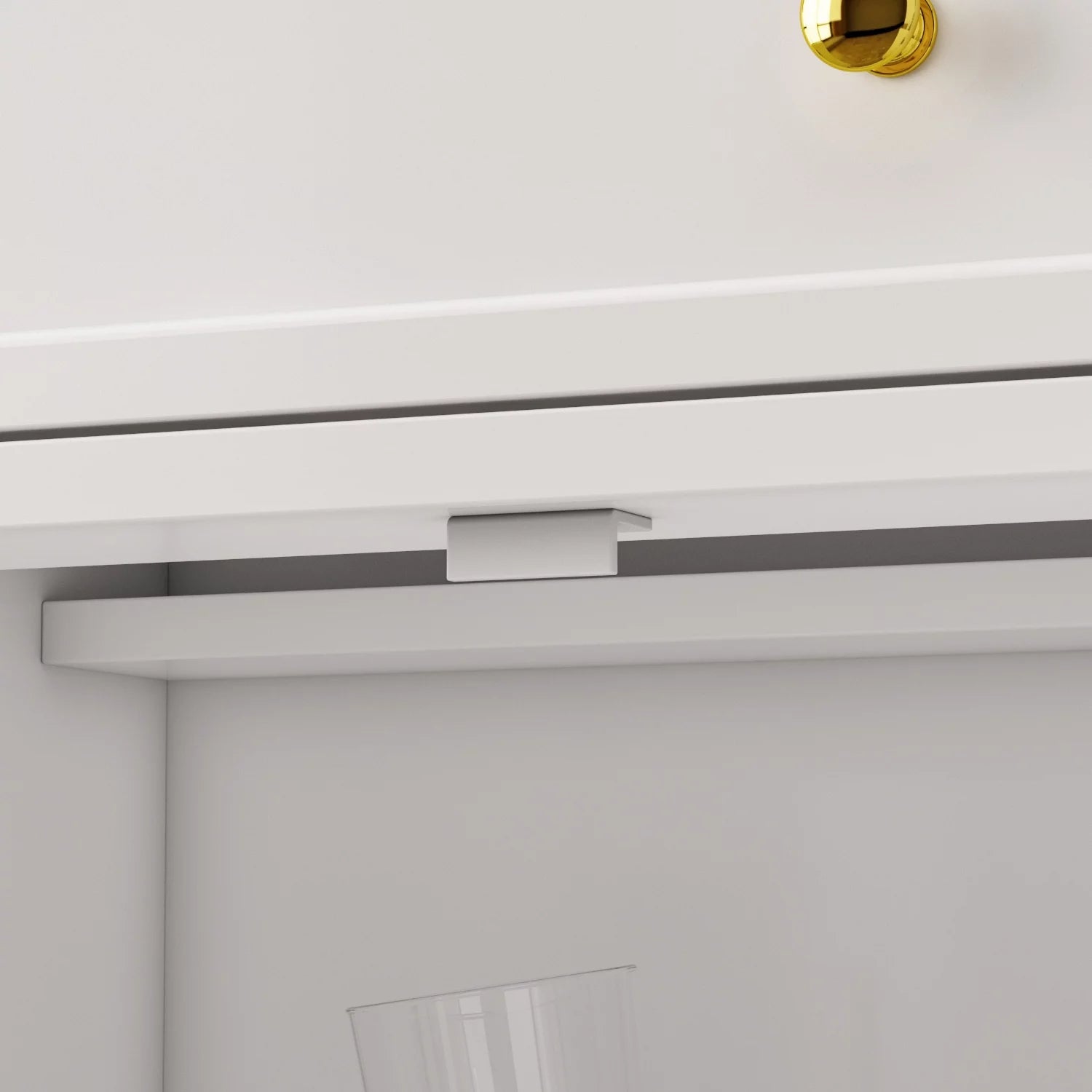 Add elegant style to your bedroom with the white dresser. The white finish on the painted MDF easily with your existing décor and the golden knob and decorative drawer front molding add a sophisticated look. Store away clothing, linens and clutter in the 4 spacious drawers that feature durable metal slides. The two cabinets on either side of the dresser make storing items of various sizes a breeze. The Wide Dresser ships flat to your door and requires assembly upon opening. Two adults are recommended to assemble. Once assembled, the Dresser measures to be 59.1" W x 15.7" D x 33.5" H.