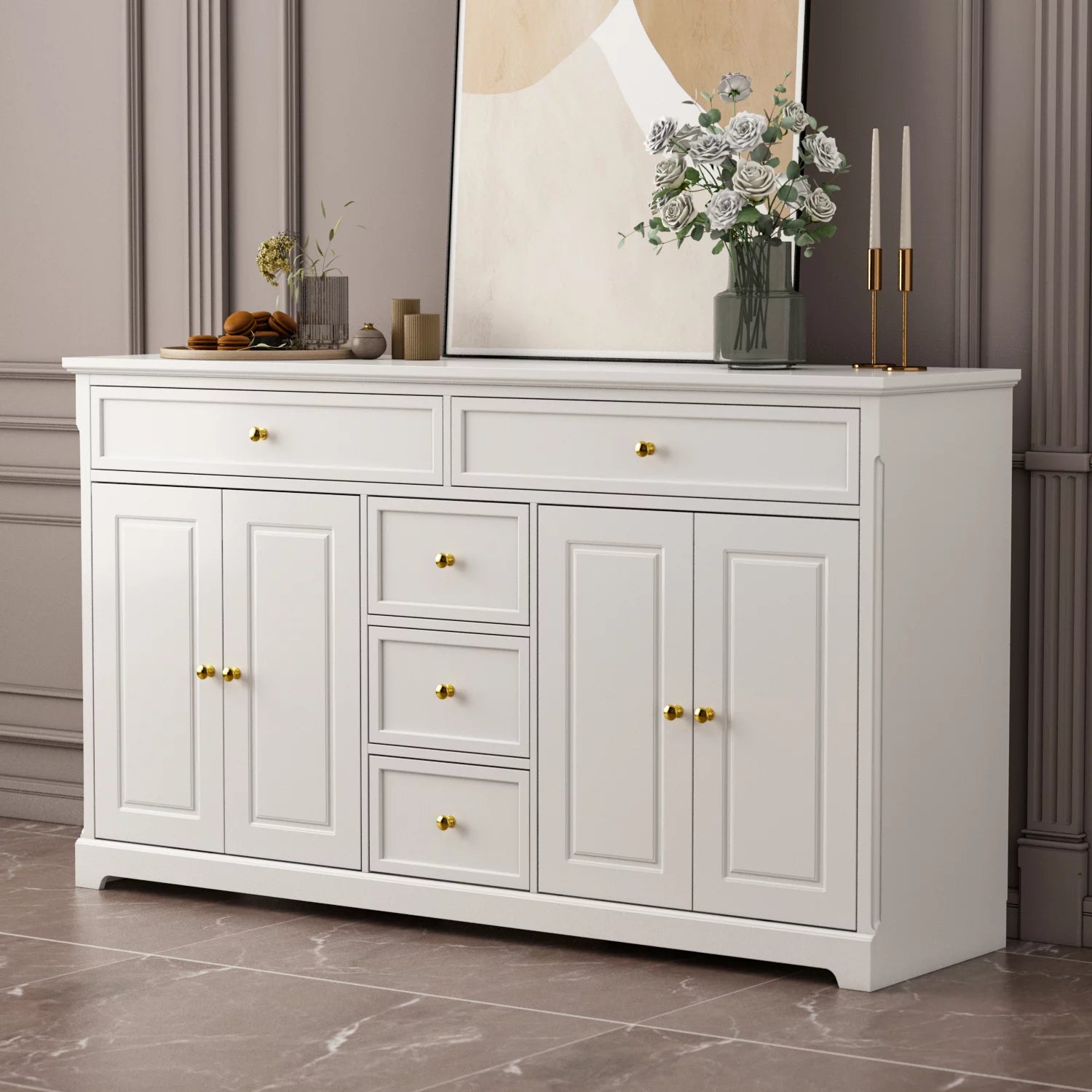 WIAWG White Buffet with 5 Drawers, 4-Door Bedroom Dresser Storage Cabinet, 59.1"Wide