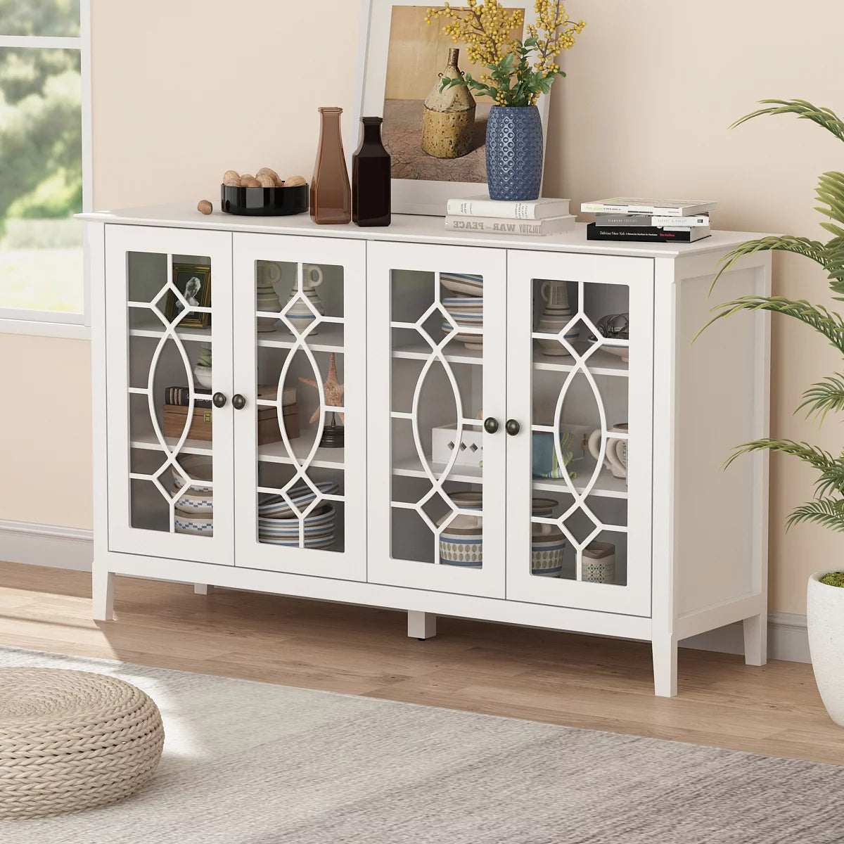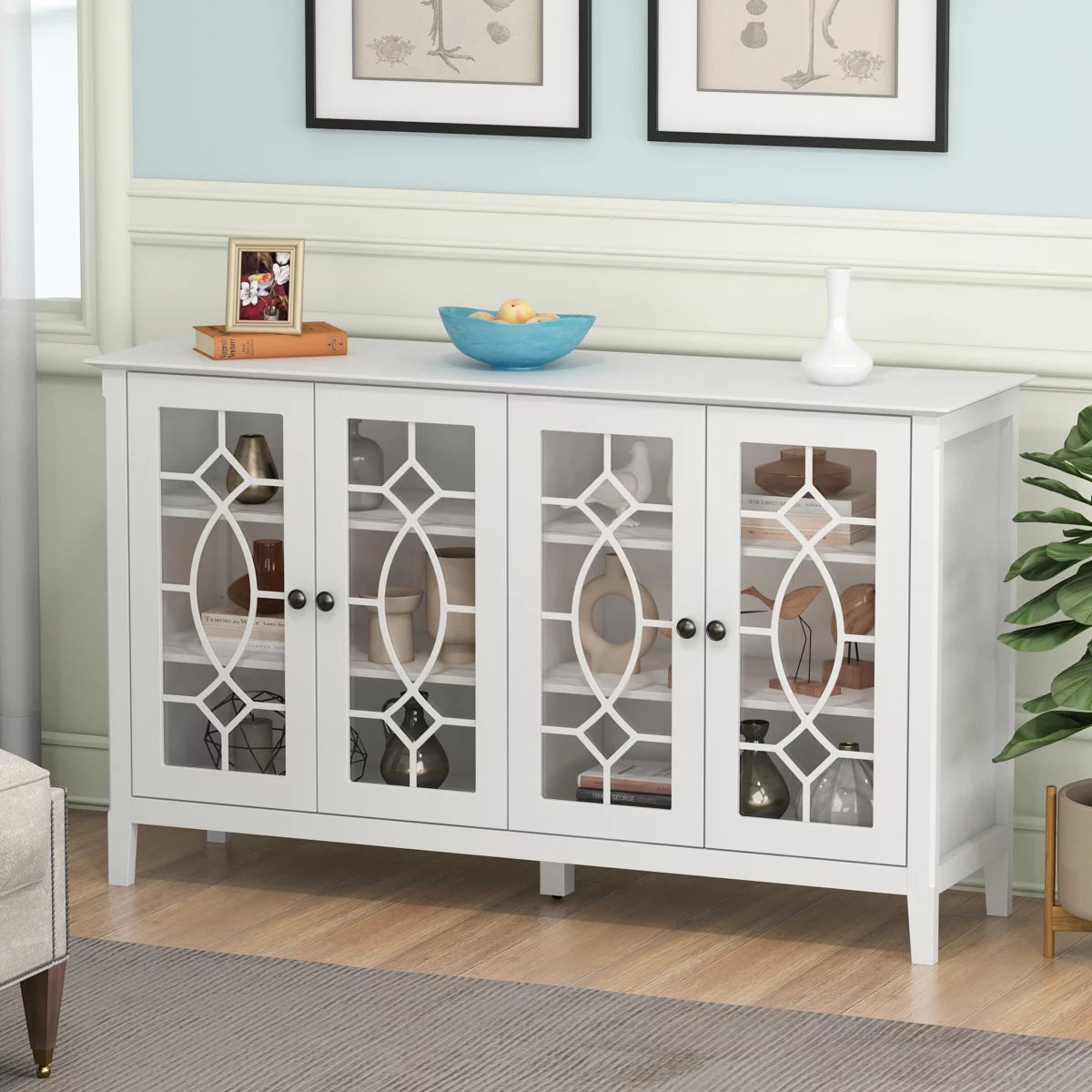 WIAWG White TV Stand Cabinet with Glass Door Sideboard 53.9"